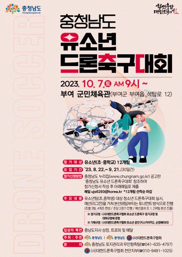 [HKSÇàÁ¤¹æ¼Û]ºÎ¿©±ºÀÌ 2023 ´ë¹éÁ¦Àü ±â°£ÀÎ ¿À´Â 10¿ù 7ÀÏ 10½ÃºÎÅÍ ºÎ¿©±º¹ÎüÀ°°ü¿¡¼ µå·ÐÃ౸ ÀÎÀç À°¼º ¹× µå·Ð ·¹Àú½ºÆ÷Ã÷ Àúº¯ È®´ë¸¦ À§ÇÑ ¡®ÃæÃ»³²µµ À¯¼Ò³â µå·ÐÃ౸´ëȸ¡¯¸¦ °³ÃÖÇÑ´Ù.
