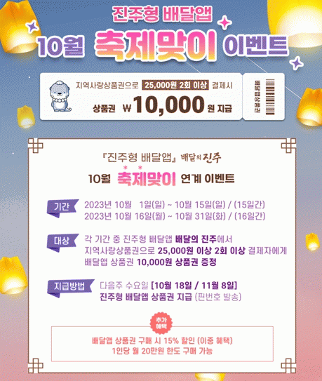 [HKSÇàÁ¤¹æ¼Û]ÁøÁֽô ¿À´Â 10¿ù 1ÀϺÎÅÍ 15ÀϱîÁö, 16ÀϺÎÅÍ 31ÀϱîÁö 2ȸ¿¡ °ÉÃÄ 10¿ù ÃàÁ¦¸ÂÀÌ ¿¬°è ÁøÁÖ Àü¿ë ¹è´Þ¾ÛÀÎ ¡®¹è´ÞÀÇ ÁøÁÖ¡¯À̺¥Æ®¸¦ ÁøÇàÇÑ´Ù.