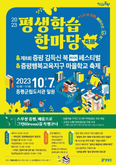 [HKSÇàÁ¤¹æ¼Û]ÃæºÏ ÁõÆò±ºÀÌ ¿À´Â 10¿ù 7ÀÏ ¡®2023 Æò»ýÇнÀÇѸ¶´ç ÃàÁ¦¡¯¸¦ °³ÃÖÇÑ´Ù. À̹ø ÃàÁ¦´Â ¡®Á¦8ȸ ÁõÆò ±èµæ½Å ºÏ(Book)Æä½ºÆ¼¹ú¡¯°ú ¡®ÁõÆòÇູ±³À°Áö±¸ ¸¶À»Çб³ ÃàÁ¦¡¯¿Í ÇÔ²² ¿ÀÀü 10½ÃºÎÅÍ ¿ÀÈÄ 5½Ã±îÁö ÁõÆò±º¸³µµ¼°ü¡¦