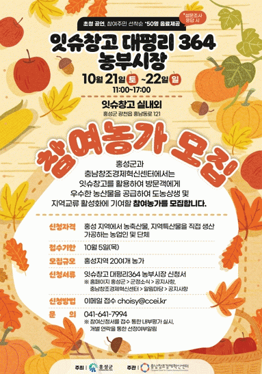 [ÃæÃ»±Ç] È«¼º±º ¡®ÀÕ½´Ã¢°í ´ëÆò¸® 364 ³óºÎ½ÃÀ塯 Âü¿©³ó°¡ ¸ðÁý |2023. 09.25