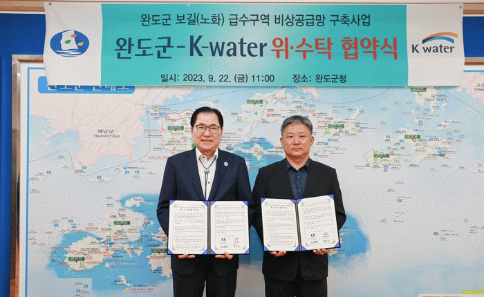 [HKSÇàÁ¤¹æ¼Û]¿Ïµµ±ºÀº Çѱ¹¼öÀÚ¿ø°ø»ç(K-water) ¿µ¡¤¼¶À¯¿ªº»ºÎ¿Í Áö³ 9¿ù 22ÀÏ ¡®¿Ïµµ±º º¸±æ¡¤³ëÈ ±Þ¼ö ±¸¿ª ºñ»ó °ø±Þ¸Á ±¸Ãà »ç¾÷¡¯ ½ÃÇàÀ» À§ÇÑ À§¼öŹ Çù¾àÀ» ü°áÇß´Ù.