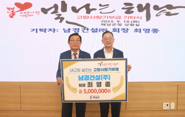 [È£³²±Ç] ÇØ³²±º °íÇâ»ç¶û±âºÎÁ¦ ³²°æ°Ç¼³(ÁÖ) ÃÖ¿µÁ¾ ȸÀå 500¸¸¿ø ±âŹ |2023. 09.22