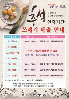 [¿µ³²±Ç] ÁøÁÖ½Ã, Ãß¼® ¿¬ÈÞ ¾²·¹±â Ưº° °ü¸® ´ëÃ¥ ¸¶·Ã |2023. 09.21