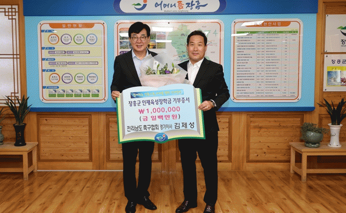 [HKSÇàÁ¤¹æ¼Û](Àç)ÀåÈﱺÀÎÀçÀ°¼ºÀåÇÐȸ´Â Áö³ 19ÀÏ Àü¶ó³²µµ Ã౸Çùȸ °æ±âÀ̻簡 ¹é¸¸ ¿øÀÇ ÀåÇбÝÀ» ±âºÎÇß´Ù°í ¹àÇû´Ù.