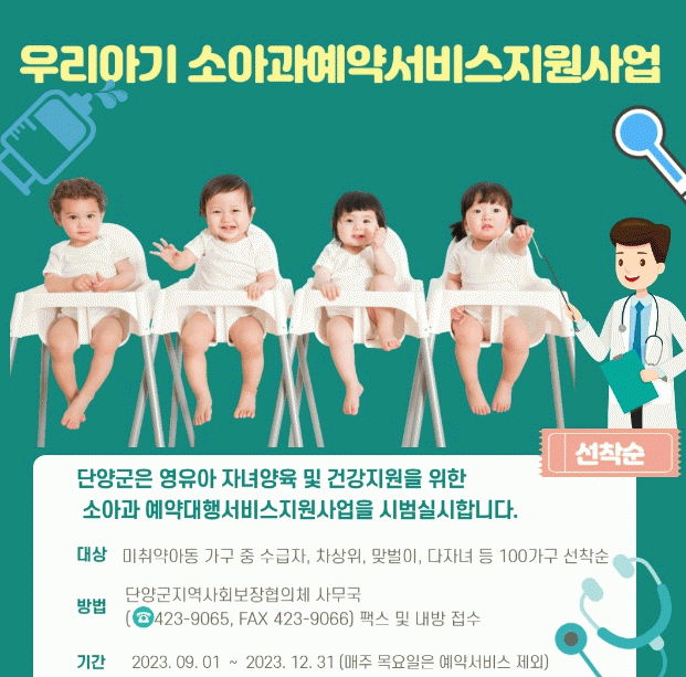 [HKSÇàÁ¤¹æ¼Û]´Ü¾ç±º Áö¿ª»çȸº¸ÀåÇùÀÇü´Â ´Ü¾çÁö¿ªÀÇ ¸¶Ãë¾à ¿µÀ¯¾ÆÀÇ Áúº´ Ä¡·á¸¦ À§ÇÑ ¿¹¾à ´ëÇà ¼ºñ½º¸¦ 9¿ù 15ÀÏ¿¡ ½ÃÀÛÇß´Ù.