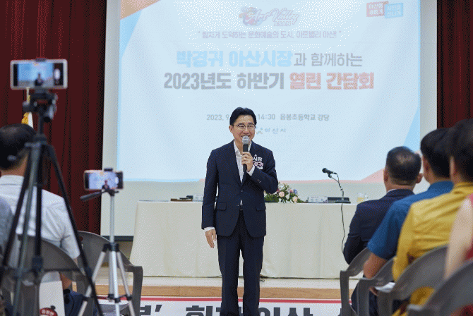 [HKSÇàÁ¤¹æ¼Û]¹Ú°æ±Í ¾Æ»ê½ÃÀå°ú À½ºÀ¸é ÁֹεéÀÇ ¡®2023 ÇϹݱ⠿¸°°£´ãȸ¡¯°¡ Áö³ 14ÀÏ À½ºÀÃʵîÇб³ °´ç¿¡¼ ¿·È´Ù.