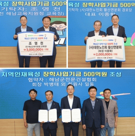Áö³ 5ÀÏ¿¡´Â Á¶¿µÃµ Àü(îñ) ÇØ³²±³À°Áö¿øÃ» ±³À°ÀåÀÌ Àӱ⸦ ¸¶¹«¸®Çϸç, ÇØ³²±º¿¡ ÀåÇлç¾÷±â±Ý 300¸¸¿øÀ» ±âŹÇß´Ù.