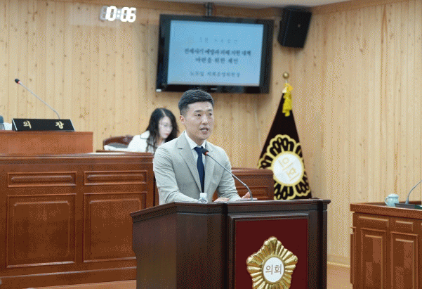 [HKSÇàÁ¤¹æ¼Û]Àü³² °Áø±ºÀÇȸ(ÀÇÀå ±èº¸¹Ì) Á¦293ȸ ÀÓ½Ãȸ ù³¯ÀÎ 14ÀÏ, Á¦1Â÷ º»È¸ÀÇ¿¡¼ À§¼º½Ä ÀÇ¿øÀÌ '°ÁøÀ¾ ±¤¿ª»ó¼öµµ Á¶±â µµÀÔ Ã˱¸'¸¦ ÁÖÁ¦·Î 5ºÐ ÀÚÀ¯¹ß¾ðÀ» Çß´Ù.