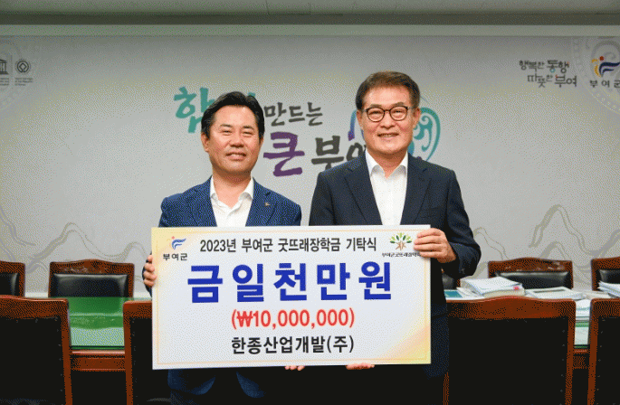 [HKSÇàÁ¤¹æ¼Û]ÇÑÁ¾»ê¾÷°³¹ß(ÁÖ)(´ëÇ¥ ÀÓ³²Àç)´Â Áö³ 13ÀÏ ºÎ¿©±ºÃ»À» ¹æ¹®ÇØ Áö¿ª ÀÎÀç À°¼ºÀ» À§ÇÑ ÀåÇÐ±Ý 1,000¸¸¿øÀ» (Àç)ºÎ¿©±º±Â¶ß·¡ÀåÇÐȸ(ÀÌ»çÀå ¹ÚÁ¤Çö)¿¡ ±âŹÇß´Ù.