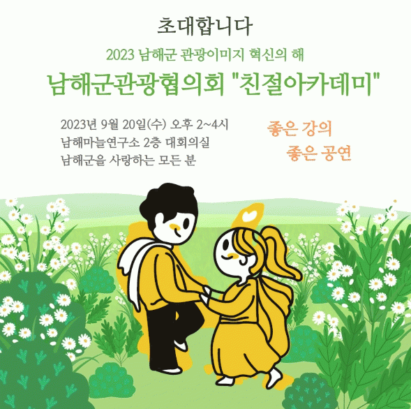 [HKSÇàÁ¤¹æ¼Û]³²Çرº °ü±¤ÇùÀÇȸ°¡ ¡®2023³â ³²Çرº °ü±¤À̹ÌÁö Çõ½ÅÀÇ ÇØ¡¯¸¦ ¸Â¾Æ ¿À´Â 9¿ù20ÀÏ ³²Çظ¶´Ã¿¬±¸¼Ò¿¡¼ ¡®Ä£Àý¾ÆÄ«µ¥¹Ì¡¯¸¦ °³ÃÖÇÑ´Ù.
