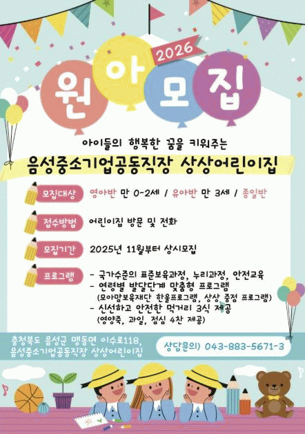 [ÃæÃ»±Ç] À½¼º±º, Áß¼Ò±â¾÷ °øµ¿Á÷Àå¾î¸°ÀÌÁý '»ó»ó¾î¸°ÀÌÁý' ¿ø¾Æ¸ðÁý |2026. 01.16
