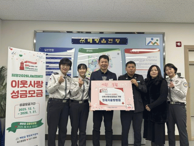 [HKSÇàÁ¤¹æ¼Û]¹è¹æÀ¾ ÀåÀçÀÚÀ²¹æ¹ü´ë´Â Áö³­ 15ÀÏ ¹è¹æÀ¾ ÇàÁ¤º¹Áö¼¾ÅÍ¿¡¼­ Áö¿ª ³» ¾î·Á¿î ÀÌ¿ôÀ» µ½±â À§ÇÑ ¡®Èñ¸Á2026 ³ª´®Ä·ÆäÀΡ¯¿¡ µ¿ÂüÇØ ¼º±Ý 100¸¸ ¿øÀ» Àü´ÞÇß´Ù. À̹ø ¼º±ÝÀº ÀåÀçÀÚÀ²¹æ¹ü´ë ´ë¿øµéÀÌ ÀÚ¹ßÀûÀ¸·Î ¶æÀ» ¸ð¾Æ ¡¦
