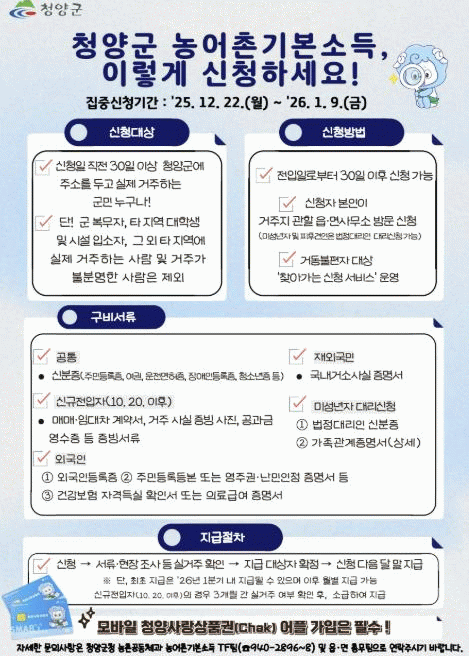 [ÃæÃ»±Ç] û¾ç±º, ³ó¾îÃÌ ±âº»¼Òµæ ½Ã¹ü»ç¾÷ ½Åû 22ÀϺÎÅÍ ½ÃÀÛ |2025. 12.18