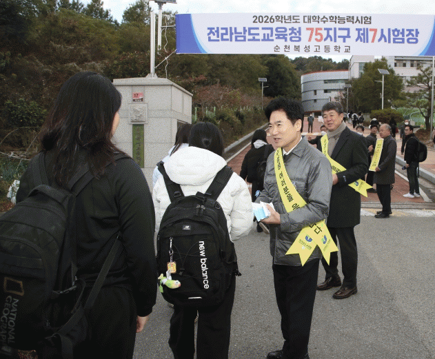 [HKSÇàÁ¤¹æ¼Û]Àü¶ó³²µµ±³À°Ã»ÀÌ 2026Çг⵵ ´ëÇмöÇдɷ½ÃÇèÀÏÀÎ 13ÀÏ ½ÃÇèÀåÀ» ã¾Æ ¼öÇè»ýÀ» ÀÀ¿øÇß´Ù.