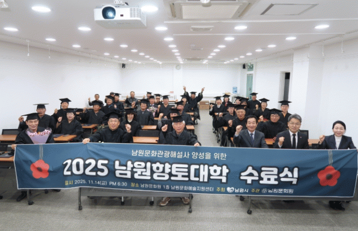 [HKSÇàÁ¤¹æ¼Û]³²¿ø¹®È­¿ø, ¹®È­°ü±¤Çؼ³»ç ¾ç¼º À§ÇÑ ÇâÅä´ëÇÐ ¼ö·á½Ä °³ÃÖ¡¦ Áö¿ª¹®È­ È®»ê ±â´ë ³²¿ø¹®È­¿øÀº 11¿ù 14ÀÏ, ³²¿ø¹®È­¿¹¼úÁö¿ø¼¾ÅÍ¿¡¼­ '2025 ³²¿øÇâÅä´ëÇÐ ¼ö·á½Ä'À» °³ÃÖÇϰí, ÃÑ 35¸íÀÇ ¼ö·á»ýÀ» ¹èÃâÇß´Ù. ³²¿øÇâÅä´ë¡¦