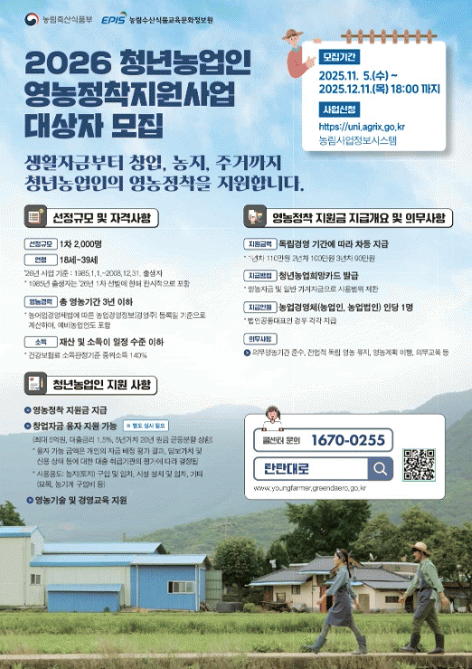 [HKSÇàÁ¤¹æ¼Û]³²¿ø½Ã´Â ¿µ³ó Ãʱ⠼ҵæÀÌ ºÒ¾ÈÁ¤ÇÑ Ã»³â³ó¾÷ÀÎÀ» Áö¿øÇϱâ À§ÇØ 2026³â û³â³ó¾÷ÀÎ ¿µ³óÁ¤Âø Áö¿ø ´ë»óÀÚ¸¦ 2025³â 12¿ù 11ÀϱîÁö ¸ðÁýÇÑ´Ù. À̹ø û³â³ó¾÷ÀÎ ¿µ³óÁ¤ÂøÁö¿ø»ç¾÷Àº û³â³ó¾÷ÀÎÀÇ °æÁ¦Àû ºÎ´ãÀ» ¿ÏÈ­ÇÏ´Â »ç¡¦
