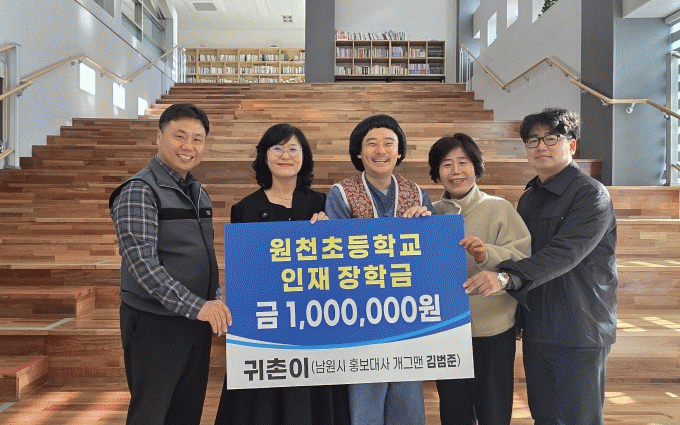 [HKSÇàÁ¤¹æ¼Û]³²¿ø½Ã´Â 12¿ù 18ÀÏ, ³²¿ø½Ã È«º¸´ë»çÀÌÀÚ ÁÖõ¸éÀ¸·Î ±ÍÃÌÇÑ °³±×¸Ç ±è¹üÁØ ¾¾°¡ ¿øÃµÃʵîÇб³ ÇлýµéÀ» À§ÇØ ÀÎÀçÀåÇÐ±Ý 100¸¸ ¿øÀ» ±âºÎÇß´Ù°í ¹àÇû´Ù.