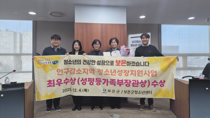 [ÃæÃ»±Ç] º¸Àº±º, Àα¸°¨¼ÒÁö¿ª û¼Ò³â ¼ºÀåÁö¿ø »ç¾÷ ÃÖ¿ì¼ö»ó ¼ö»ó |2025. 12.04