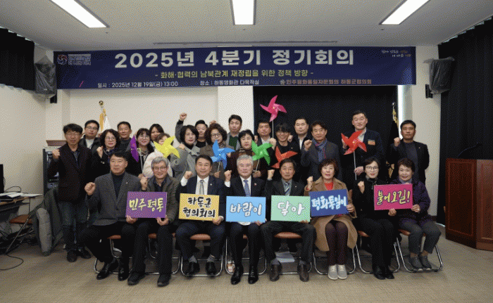 [HKSÇàÁ¤¹æ¼Û]¹ÎÁÖÆòÈÅëÀÏÀÚ¹®È¸ÀÇ Çϵ¿±ºÇùÀÇȸ(ÇùÀÇȸÀå ÀÌÈ«°ï)°¡ Áö³ 19ÀÏ ¿ÀÈÄ 2½Ã Çϵ¿¿µÈ°ü¿¡¼ ÀÚ¹®À§¿ø°ú Áö¿ª ÁֹΠµî 150¿© ¸íÀÌ Âü¼®ÇÑ °¡¿îµ¥ ¡®2025³â ùÁÔÔ ÆòÈÅëÀÏ ¿µÈÁ¦¡¯¸¦ °³ÃÖÇß´Ù.