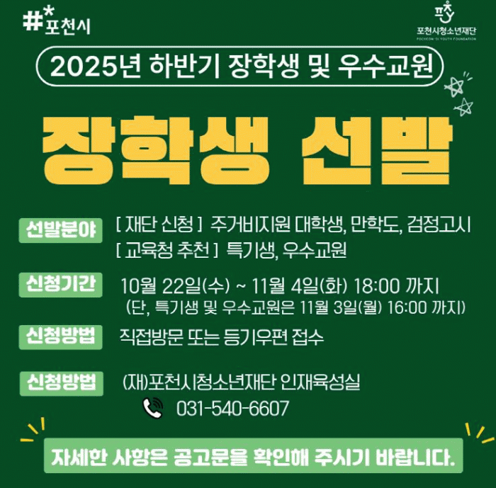[¼öµµ±Ç] Æ÷õ½Ãû¼Ò³âÀç´Ü, 2025³âµµ ÇϹݱâ ÀåÇлý ¹× ¿ì¼ö±³¿ø ¼±¹ß ÃßÁø |2025. 10.24