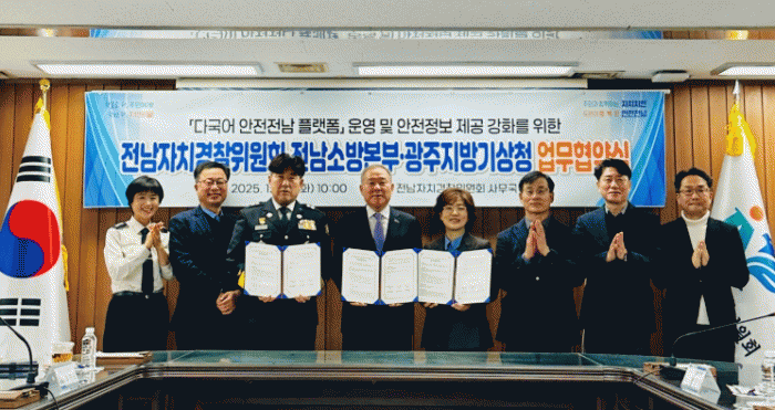 [HKSÇàÁ¤¹æ¼Û]Àü³²ÀÚÄ¡°æÂûÀ§¿øÈ¸´Â Àü³²¼Ò¹æº»ºÎ, ±¤ÁÖÁö¹æ±â»óû°ú Áö³ 23ÀÏ ¾÷¹«Çù¾àÀ» ÇØ ¿Ü±¹ÀÎÀÇ ¾ÈÀüÇÑ »ýȰÀ» º¸È£Çϰí Áö¿øÇÏ´Â ´Ù±¹¾î ¾ÈÀüÀü³² ¾Û ¿î¿µ°ú ¾ÈÀüÁ¤º¸ Á¦°øÀ» ÇÑÃþ °ÈÇϱâ·Î Çß´Ù.