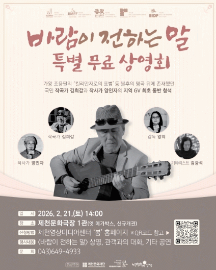 [HKSÇàÁ¤¹æ¼Û]Á¦Ãµ¹®ÈÀç´ÜÀÌ ¿À´Â 2¿ù 21ÀÏ ¿ÀÈÄ 2½Ã, Á¦Ãµ¹®È±ØÀå (ÀǺ´´ë·Î18±æ 1)¿¡¼ ¾çÈñ °¨µ¶°ú Ã⿬ÁøÀÌ ÇÔ²² ÇÏ´Â '¹Ù¶÷ÀÌ ÀüÇÏ´Â ¸»' Ưº° ¹«·á »ó¿µÈ¸¸¦ °³ÃÖÇÑ´Ù. ¿µÈ '¹Ù¶÷ÀÌ ÀüÇÏ´Â ¸»'Àº Á¶¿ëÇÊÀÇ ¡®Å³¸®¸¸ÀÚ·ÎÀÇ Ç¥¹ü¡¦