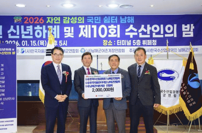 [HKSÇàÁ¤¹æ¼Û]³²ÇرºÀº Áö³ 22ÀÏ ³²Çرº ¼ö»ê´ÜüµéÀÌ ÀÌ¿ôµ½±â ¼º±Ý 200¸¸¿øÀ» ±âŹÇß´Ù°í ¹àÇû´Ù. À̹ø ¼º±ÝÀº (»ç)Çѱ¹¼ö»ê¾÷°æ¿µÀÎ ³²Çرº¿¬ÇÕȸ, (»ç)³²Çرº¾îÃ̰èÀ忬ÇÕȸ, (»ç)Çѱ¹ÀÚÀ²°ü¸®¾î¾÷ ³²Çرº¿¬ÇÕȸ µî 3°³ ¼ö»ê´Üü°¡¡¦