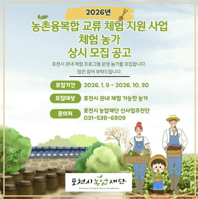 [¼öµµ±Ç] Æ÷õ½Ã³ó¾÷Àç´Ü, 2026³â ³óÃÌÀ¶º¹ÇÕ ±³·ù üÇè Áö¿ø »ç¾÷ ÃßÁø |2026. 01.13
