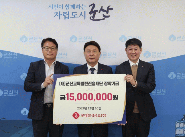[HKSÇàÁ¤¹æ¼Û]·Ôµ¥Ä¥¼ºÀ½·á(ÁÖ)(´ëÇ¥ ¹ÚÀ±±â)´Â 16ÀÏ ±º»ê½ÃûÀ» ã¾Æ Áö¿ªÀÇ ±³À° ¹ßÀüÀ» À§ÇØ ½á´Þ¶ó¸ç ÀåÇÐ±Ý 1,500¸¸ ¿øÀ» ±º»ê±³À°¹ßÀüÁøÈïÀç´Ü¿¡ ±âŹÇß´Ù.