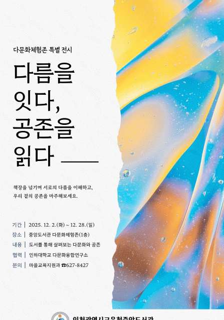 [¼öµµ±Ç] ÀÎõ±¤¿ª½Ã±³À°Ã»Áß¾Óµµ¼°ü, ´Ù¹®È Ưº° Àü½Ã ¡®´Ù¸§À» ÀÕ´Ù, °øÁ¸À» Àд١¯ °³ÃÖ |2025. 12.02