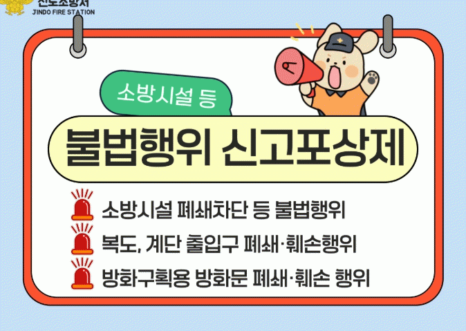 [HKSÇàÁ¤¹æ¼Û]Áøµµ¼Ò¹æ¼´Â ÈÀç ¹ß»ý ½Ã ½Å¼ÓÇÑ ´ëÇǸ¦ À§ÇÑ ÇdzÅë·Î È®º¸¿Í ÈÀç ¾ÈÀü°ü¸® °È¸¦ À§ÇØ, ºñ»ó±¸ Æó¼â³ª ¼Ò¹æ½Ã¼³ Â÷´Ü°ú °°Àº ºÒ¹ýÇàÀ§¿¡ ´ëÇÑ ½Å°íÆ÷»óÁ¦¸¦ ¿¬Áß ½ÃÇà ÁßÀ̶ó°í ¹àÇû´Ù.