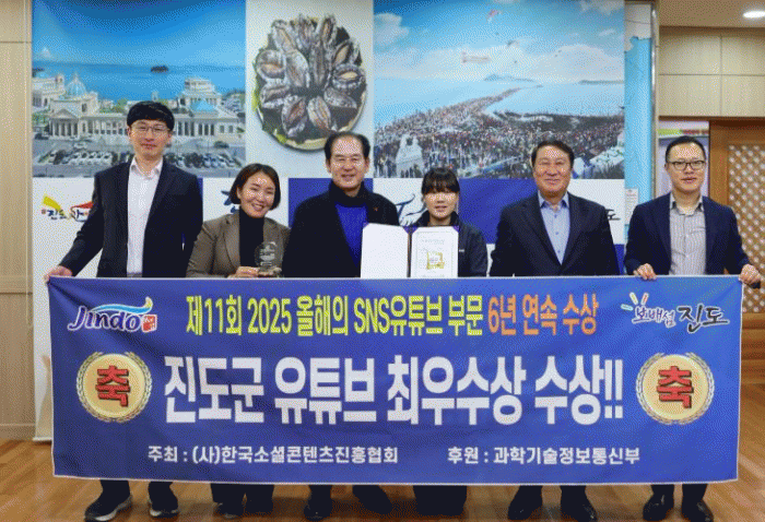 [HKSÇàÁ¤¹æ¼Û]Áøµµ±ºÀÌ ¡®Á¦11ȸ 2025 ¿ÃÇØÀÇ ´©¸®¼ÒÅë¸Á(SNS) ´ë»ó¡¯¿¡ Âü°¡ÇØ À¯Æ©ºê-±âÃÊÁöÀÚü ºÎ¹®¿¡¼ 6³â ¿¬¼ÓÀ¸·Î ÃÖ¿ì¼ö»óÀ» ¹ÞÀ¸¸ç, ´Ù½Ã Çѹø À¯Æ©ºê °ÀÚÀÓÀ» ÀÔÁõÇß´Ù.