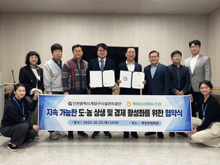 [HKSÇàÁ¤¹æ¼Û]ÀÎõ±¤¿ª½Ã°è¾ç±¸½Ã¼³°ü¸®°ø´ÜÀº 10¿ù 23ÀÏ °è¾ç¹®Èȸ°ü ¹®È¼¾ÅÍ °Àǽǿ¡¼ °è¾ç³óÇù°ú ¡®Áö¼Ó °¡´ÉÇÑ µµ³ó»ó»ý ¹× Áö¿ª°æÁ¦ Ȱ¼ºÈ¸¦ À§ÇÑ ¾÷¹«Çù¾à¡¯À» ü°áÇß´Ù°í ¹àÇû´Ù.