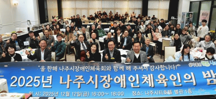 [HKSÇàÁ¤¹æ¼Û]Àü¶ó³²µµ ³ªÁֽð¡ Áö³­ ÇÑ ÇØ Àå¾ÖÀÎüÀ° ¹ßÀüÀ» À̲ö ¼±¼ö¿Í ÁöµµÀÚ, Á¾¸ñ´ÜüÀÇ ³ë°í¸¦ °Ý·ÁÇÏ°í ¼º°ú¸¦ °øÀ¯ÇÏ´Â ¶æ±íÀº ÀÚ¸®¸¦ ¸¶·ÃÇß´Ù. ³ªÁÖ½ÃÀå¾ÖÀÎüÀ°È¸´Â Áö³­ 12ÀÏ ³ªÁÖ¾¾Æ¼È£ÅÚ º°°ü¿¡¼­ ¡®2025 ³ªÁֽà Àå¾ÖÀΡ¦