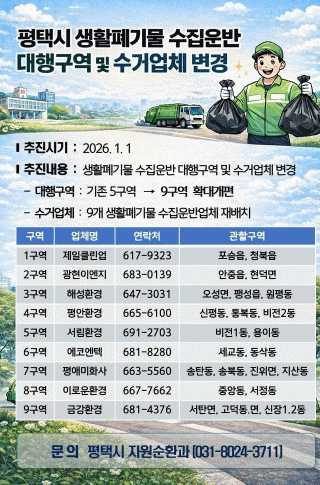 [¼öµµ±Ç] ÆòÅýÃ, »ýȰÆó±â¹° ¼öÁý ¿î¹Ý ü°è Àü¸é °³Æí |2025. 12.30