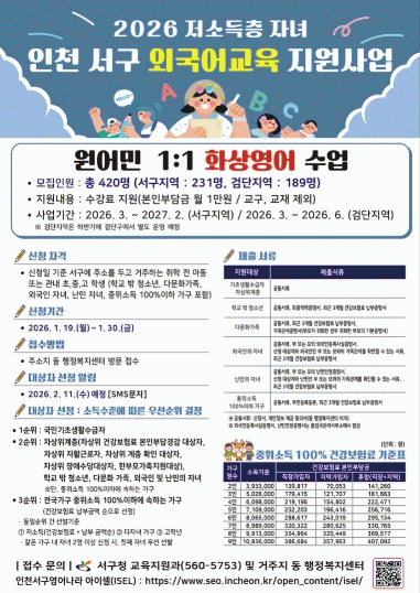 [¼öµµ±Ç] ÀÎõ ¼­±¸, Àú¼ÒµæÃþ ÀÚ³à ¿Ü±¹¾î±³À° ¡®¿ø¾î¹Î È­»ó¿µ¾î¡¯ Áö¿ø »ç¾÷ È®´ë ½Ç½Ã |2026. 01.12