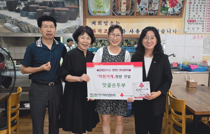 [HKSÇàÁ¤¹æ¼Û]¿¬¼ö±¸ ¿¬¼ö2µ¿ Áö¿ª»çȸº¸ÀåÇùÀÇü´Â Áö³´Þ 29ÀÏ °ü³» Àå±â¿ä¾ç±â°ü ¡®¿£Á©º¹Áö¿ë±¸¡¯¿Í ½Ä´ç ¡®¸À°ñ ¼ÕµÎºÎ¡¯¿¡ ³ª´® ÀÎÁõ ¡®ÂøÇѰ¡°Ô¡¯ ÇöÆÇÀ» Àü´ÞÇϰí Áö¿ª»çȸ ³ª´® ½Çõ¿¡ °¨»çÀÇ ¶æÀ» Ç¥Çß´Ù. ¡®ÂøÇѰ¡°Ô¡¯¶õ ÀÚ¿µ¡¦