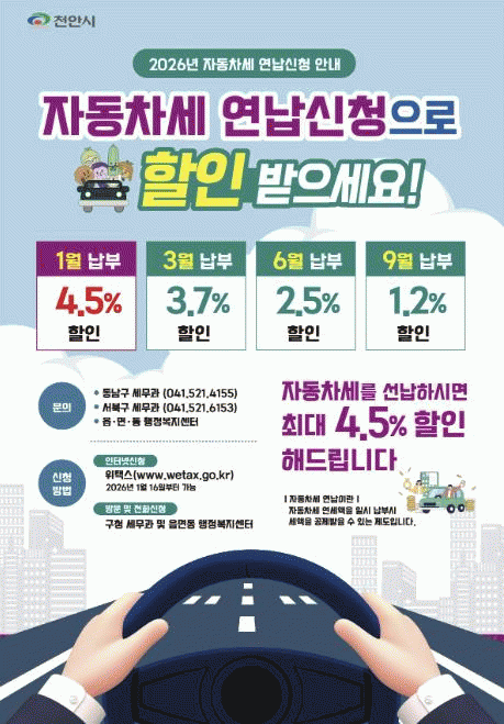 [ÃæÃ»±Ç] õ¾È½Ã, 2026³â ÀÚµ¿Â÷¼¼ ¿¬³³ ½Åû Á¢¼ö |2026. 01.07