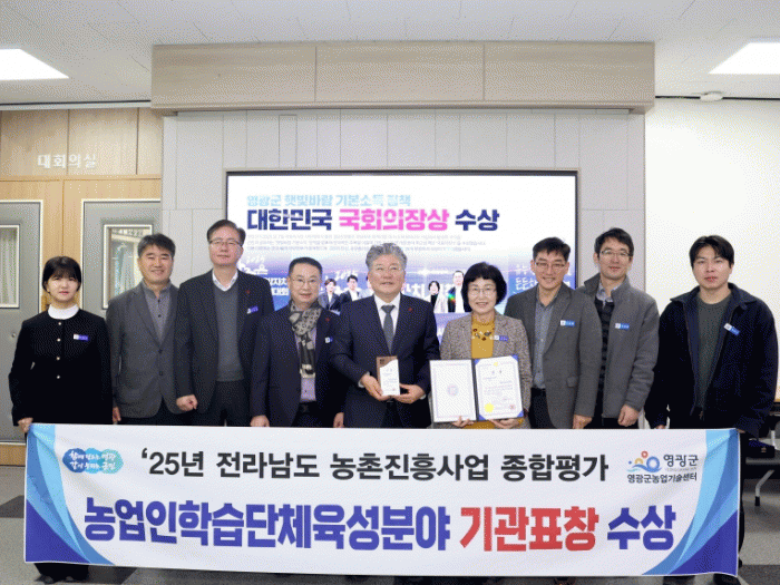 [HKSÇàÁ¤¹æ¼Û] ¿µ±¤±ºÀº 12¿ù 11ÀÏ Àü¶ó³²µµ³ó¾÷±â¼ú¿ø¿¡¼ °³ÃÖµÈ '2025³â Àü¶ó³²µµ ³óÃÌÁøÈï»ç¾÷ Á¾ÇÕº¸°íȸ'¿¡¼ ³ó¾÷ÀÎ ÇнÀ´Üü À°¼ººÐ¾ß ¿ì¼ö±â°üÀ¸·Î ¼±Á¤µÆ´Ù°í ¹àÇû´Ù.