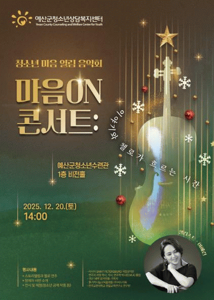 [ÃæÃ»±Ç] ¿¹»ê±ºÃ»¼Ò³â»ó´ãº¹Áö¼¾ÅÍ, û¼Ò³â ¸¶À½ ¿¸²À½¾Çȸ '¸¶À½ ¿Â(ON) ÄܼƮ' °³ÃÖ |2025. 12.17