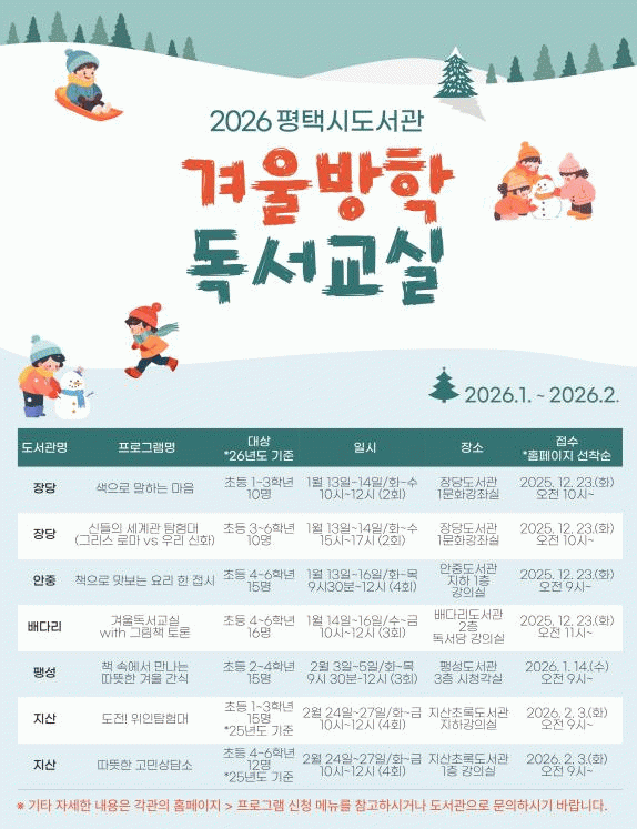 [HKSÇàÁ¤¹æ¼Û]ÆòÅýà µµ¼°üÀº °Ü¿ï¹æÇÐÀ» ¸Â¾Æ ¾î¸°À̵éÀÇ »ç°í·Â°ú âÀÇ·Â Çâ»óÀ» µ½±â À§ÇØ ?°Ü¿ï¹æÇÐ µ¶¼±³½Ç¡¯À» ¿À´Â 1~2¿ù±îÁö °ü³» 5°³ µµ¼°ü¿¡¼ ¿î¿µÇÑ´Ù°í ¹àÇû´Ù. µ¶¼±³½ÇÀº µ¶¼¡¤Åä·Ð¡¤Ã¼ÇèÀ» °áÇÕÇÑ ÇÁ·Î±×·¥À¸·Î ±¸¼º¡¦