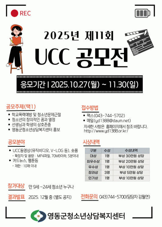 [ÃæÃ»±Ç] ¿µµ¿±ºÃ»¼Ò³â»ó´ãº¹Áö¼¾ÅÍ, ¡®2025³â Á¦11ȸ UCC °ø¸ðÀü¡¯ °³ÃÖ |2025. 10.24