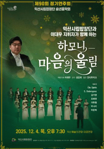 [HKSÇàÁ¤¹æ¼Û]ÀÍ»ê½Ã¸³ÇÕâ´ÜÀÌ ÇÑ ÇØÀÇ ¸¶Áö¸·À» À½¾ÇÀ¸·Î µû¶æÇÏ°Ô Ã¤¿î´Ù. ÀÍ»ê½Ã¸³ÇÕâ´ÜÀº 12¿ù 4ÀÏ ¿ÀÈÄ 7½Ã 30ºÐ, Á¦90ȸ Á¤±â¿¬ÁÖȸ 'Çϸð´Ï-¸¶À½ÀÇ ¿ï¸²'À» Àͻ꿹¼úÀÇÀü´ç ´ë°ø¿¬Àå ¹«´ë¿¡ ¿Ã¸°´Ù. À̹ø Á¤±â¿¬ÁÖȸ´Â ÇÑ ÇØ¡¦