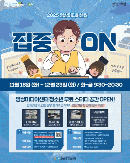 [¼öµµ±Ç] ºÎÆò±¸Ã»¼Ò³â¼ö·Ã°ü, ¿µ»ó¹Ìµð¾î¼¾ÅÍ ½ÃÇè±â°£ û¼Ò³âÀ» À§ÇÑ ¹«·á ½ºÅ͵ðÄ«Æä ¿î¿µ |2025. 11.25