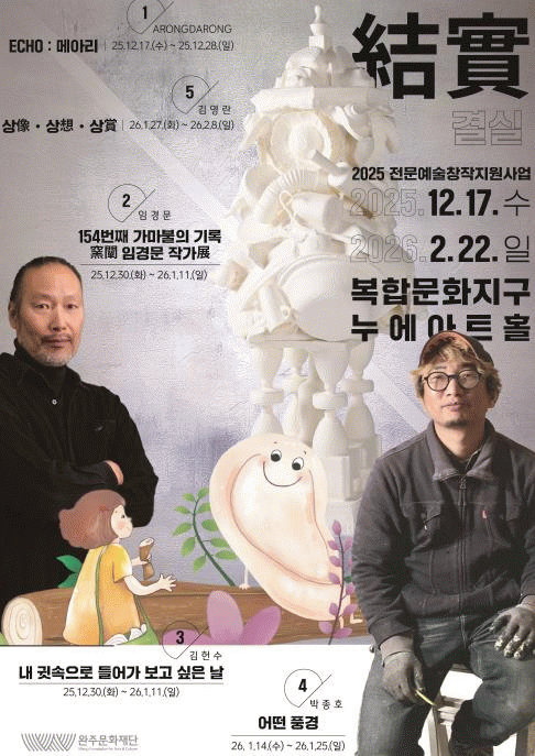 [HKSÇàÁ¤¹æ¼Û](Àç)¿ÏÁÖ¹®È­Àç´ÜÀº 2025 Àü¹®¿¹¼úâÀÛÁö¿ø»ç¾÷ÀÇ ¼º°ú¸¦ ½Ã¹Î°ú °øÀ¯Çϱâ À§ÇØ ¡®2025 Àü¹®¿¹¼úâÀÛÁö¿ø»ç¾÷ °á°ú¹ßÇ¥ Àü½Ã '°á½Ç(Ì¿ãù)'À» ¿À´Â 12¿ù 17ÀϺÎÅÍ 2026³â 2¿ù 22ÀϱîÁö º¹ÇÕ¹®È­Áö±¸ ´©¿¡¾ÆÆ®È¦ 1¡¤2 Àü½Ã½Ç¿¡¡¦