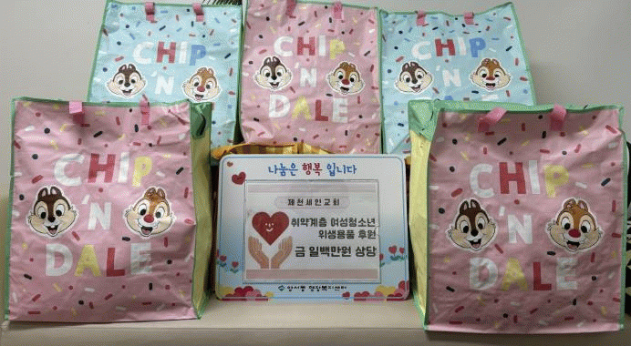 [HKSÇàÁ¤¹æ¼Û]Á¦Ãµ¼¼Àα³È¸°¡ »õÇØ¸¦ ¸Â¾Æ Àú¼Òµæ °¡±¸ ¿©¼º û¼Ò³âÀ» À§ÇÑ À§»ý¿ëǰ ²Ù·¯¹Ì(100¸¸ ¿ø »ó´ç)¸¦ ¿µ¼µ¿ ÇàÁ¤º¹Áö¼¾ÅÍ¿¡ Àü´ÞÇß´Ù. Á¦Ãµ¼¼Àα³È¸´Â ±×µ¿¾È Áö¿ª ³» Ãë¾à°èÃþÀ» À§ÇÑ ³ª´® Ȱµ¿¿¡ ²ÙÁØÈ÷ ¾ÕÀå¼ ¿Ô´Ù. À̹ø ¡¦