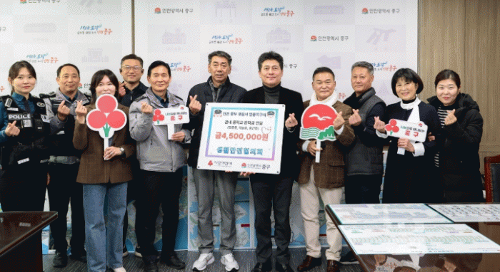 [HKSÇàÁ¤¹æ¼Û]ÀÎõ½Ã Áß±¸´Â Áö³ 18ÀÏ ÀÎõÁߺΰæÂû¼ ¿µÁ¾Áö±¸´ë(´ëÀå È«¸¸±â)¿Í »ýȰ¾ÈÀüÇùÀÇȸ(ȸÀå À̱Ùö)°¡ Áß±¸Ã»À» ¹æ¹®ÇØ Àú¼ÒµæÃþ ÁßÇлýÀ» À§ÇÑ ÀåÇÐ±Ý 450¸¸ ¿øÀ» ±âŹÇß´Ù°í ¹àÇû´Ù.