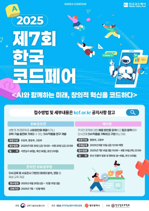 [HKSÇàÁ¤¹æ¼Û]±¤ÁÖ±¤¿ª½Ã´Â °úÇбâ¼úÁ¤º¸Åë½ÅºÎ, Çѱ¹Áö´ÉÁ¤º¸»çȸÁøÈï¿ø°ú ÇÔ²² 17~18ÀÏ ÀÌÆ²°£ ±è´ëÁßÄÁº¥¼Ç¼¾ÅÍ¿¡¼ ±¹³» ÃÖ´ë ÄÄÇ»ÅÍÇÁ·Î±×·¥ °æÁø´ëȸÀÎ ¡®Á¦7ȸ Çѱ¹ÄÚµåÆä¾î¡¯ º»¼± ´ëȸ¸¦ °³ÃÖÇÑ´Ù.