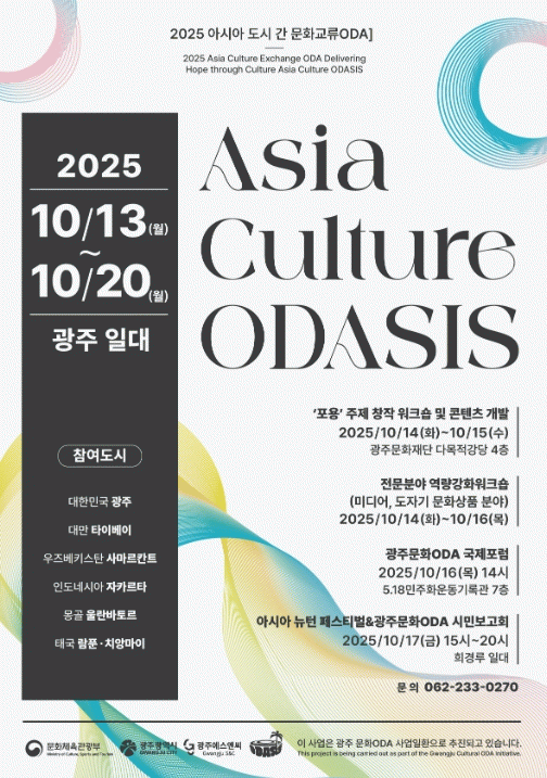 [HKSÇàÁ¤¹æ¼Û]±¤ÁÖ±¤¿ª½Ã´Â 17ÀÏ ¿ÀÈÄ 5½Ã30ºÐ µ¿±¸ Èñ°æ·ç ¾ß¿Ü°ø¿¬Àå¿¡¼ ¾Æ½Ã¾Æ µµ½Ã °£ ¹®È±³·ù Çù·Â»ç¾÷ÀÎ ¡®±¤ÁÖÇü ¹®È °øÀû°³¹ß¿øÁ¶(ODA)-¾Æ½Ã¾Æ ÄÃÃÄ ¿À´Ù½Ã½º(Asia Culture ODASIS) ½Ã¹Î ¼º°úº¸°íȸ¡¯¸¦ °³ÃÖÇÑ´Ù.