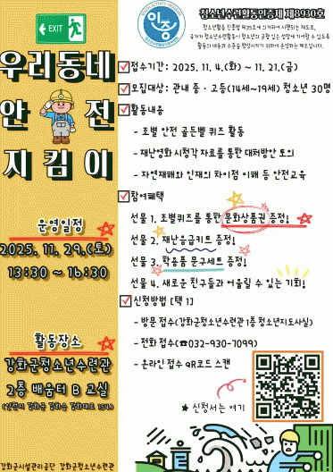 [HKSÇàÁ¤¹æ¼Û]°È±º½Ã¼³°ü¸®°ø´Ü(ÀÌ»çÀå ¹Ú¿µ±æ)¿¡¼ ¿î¿µÇϴ û¼Ò³â¼ö·Ã°üÀÌ ¿À´Â 29ÀÏ, °ü³» Áß¡¤°íµîÇлý(14¼¼~19¼¼) 30¸í û¼Ò³âÀ» ´ë»óÀ¸·Î û¼Ò³â¼ö·ÃȰµ¿ ÀÎÁõÁ¦(Á¦8930È£) ¡®¿ì¸®µ¿³× ¾ÈÀü ÁöÅ´ÀÌ¡¯À» ¿î¿µÇÑ´Ù°í ¹àÇû´Ù. ¡®¡¦
